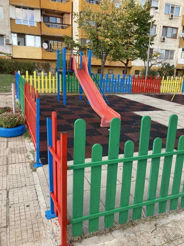 боядисани са скамейките и оградата около площадката. Поставено е ново