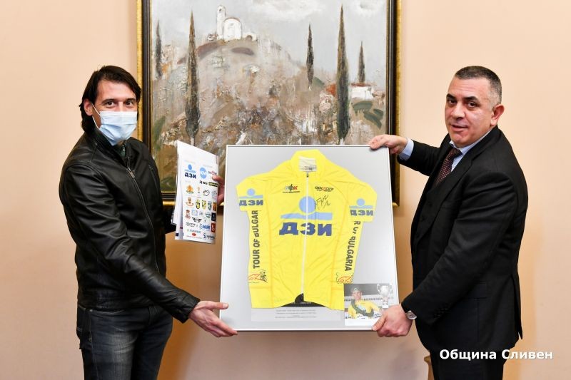 Лидерската фланелка с автограф на големия победител в 67-ата Международна колоездачна обиколка на България Патрик Стош получи кметът Стефан Радев. Тя му бе връчена от Евгени Балев, който е част от Българска федерация колоездене.