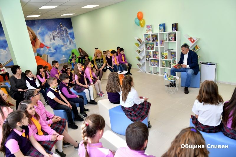 На 1 юни – Международен ден на детето, кметът Стефан Радев чете български приказки на второкласници в новия Библиотечно-информационен център в СУ „Константин Константинов“.
