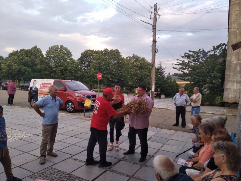 С много настроение, музика и сноп пшеница, жителите на Селиминово посрещнаха водача на листата на БСП за България в Сливен, Атанас Зафиров и д-р Събина Петканска – кандидат за народен представител.