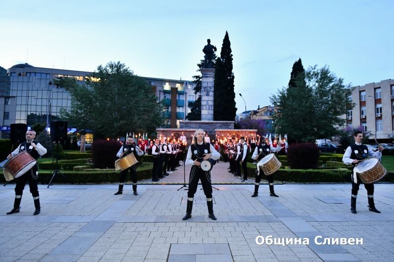 Пищно дръм-шоу от инструментални и танцови изпълнения на група „Вакали“ даде началото на Майски дни на културата „Сливенски огньове“. Символният огън беше запален от кмета Стефан Радев и част от състава на група „Вакали“. От началото до края на церемонията ученици от сливенски гимназии оформиха караул с факли около паметника на Хаджията.