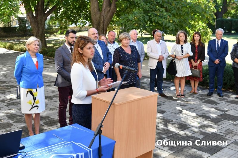 С химна на Република България започна днешната официална церемония по случай новата академична година във Филиал Сливен към Медицински университет-Варна. Сред официалните гости в двора на висшето учебно заведение бе зам.-кметът Пепа Чиликова. Тя поздрави ръководството, академичния състав и студентите, като изрази задоволство от възможността да сподели с тях тържествения момент. От името на кмета Стефан Радев тя връчи поздравителен адрес на директора на сливенския филиал проф. Иван Александров. В него кметът поздравява студентите за избора им на професия, която е хуманна, човеколюбива, посветена на човешкия живот и здраве. Той им пожелава тя да им носи удовлетворение и истинска радост. Да бъдат неуморни и упорити и да намерят своя път на реализация и надграждане в родния Сливен. „На всички студенти, които ще прекрачат за първи път прага на Филиал Сливен към Медицински университет-Варна „Проф. д-р Параскев Стоянов“, искам да споделя, че са привилегировани да бъдат обучавани от висококвалифицирани специалисти и отговорни хора, за които медицината и грижата за здравето, са призвание“, пише още в поздравителния адрес от сливенския градоначалник. Поздравителен адрес бе получен и от ректора на варненския медицински университет проф. д-р Валентин Игнатов.