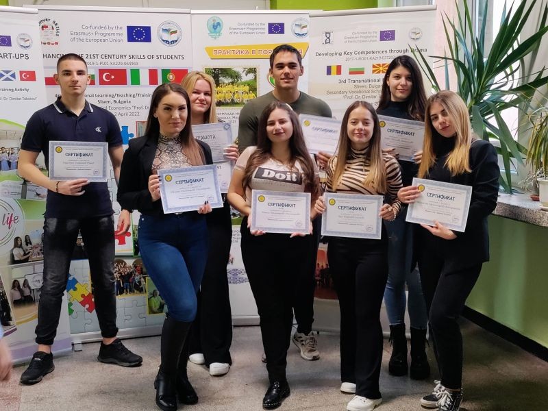Национално ученическо състезание по Митнически и данъчен контрол Изключително представяне на нашите момичета и момчета! На 24.11.2022 г. в ПГИ "Г. С. Раковски" - гр. Ямбол - се проведе интересно и оспорвано състезание между ученици в икономически гимназии от различни градове, организирано от Стопанска академия "Дим. А. Ценов" - гр. Свищов, катедра "Контрол и анализ на стопанската дейност". Отборно на първо място се класираха нашите дванадесетокласници Наталия Камаринчева, Ивелина Димитрова, Димитър Маринов, Ванеса Димитрова, Еда Недриева, Радостин Рашев, Теодора Генова и Соня Атанасова. Отборът с най-висок сбор точки. Браво! Специалната награда на Ректора на Академията бе връчена на Теодора Генова от 12 г клас! Те получиха сертификати и право да изберат специалности, в които да се запишат с предимство като студенти през следващата учебна година. На база на постигнатите резултати могат да бъдат освободени и от семестриални такси. Благодарим за подготовката и подкрепата на техния учител по професионална подготовка д-р и. н. Ганчо Илиев! Разбрахме, че там сте се отличили и като най-усмихнатите ученици. Браво, страхотни бъдещи абитуриенти и студенти, гордеем се с вас!