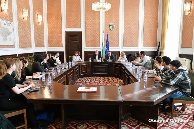 Представители на европейски младежки организации, работещи по Еразъм бяха посрещнати от кмета Стефан Радев в Община Сливен. В състава на делегацията участваха младежи от четири страни – Гърция, Италия, Полша и домакините от България.