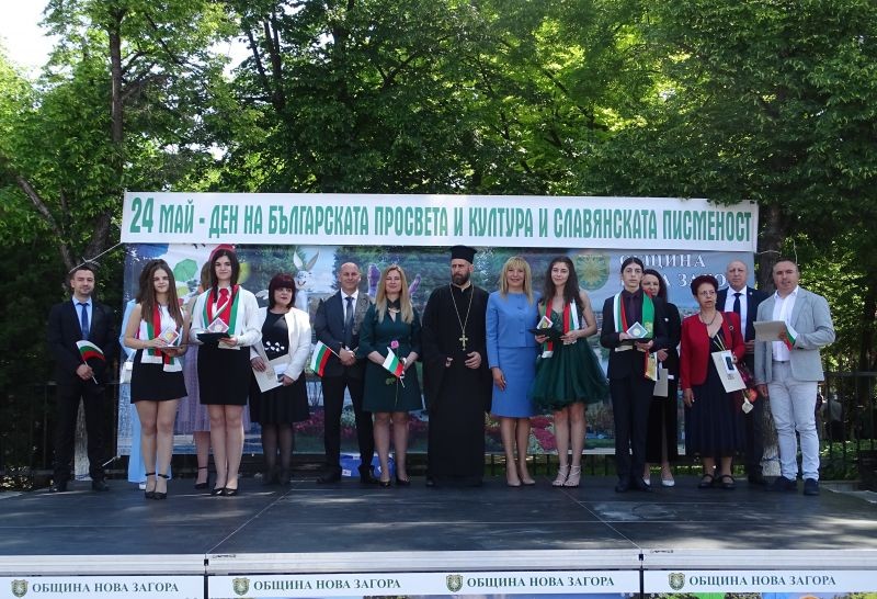 На този светъл всенароден майски празник всички българи, чиито сърца пазят факела на родното слово, отдават почит пред създателите на българската азбука – Кирил и Методий. Техните портрети бяха част от тържествената редица. Пред погледите им преминаха манифестиращи представителни блокове на детски градини, училища, танцови формации, за да се подредят около сцената на площада. От нея кметът на Община Нова Загора Галя Захариева се обърна с празнично поздравление: