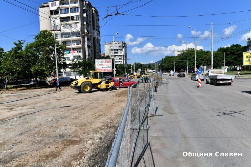 Изграждането на кръговото движение между булевардите „Бургаско шосе“ и „Илинденско въстание“ в Сливен се извършва по график. Половината от площта е почистена от стария асфалт и в този участък започна поставянето на бордюри. Това стана ясно по време на посещение на кмета Стефан Радев днес на обекта.