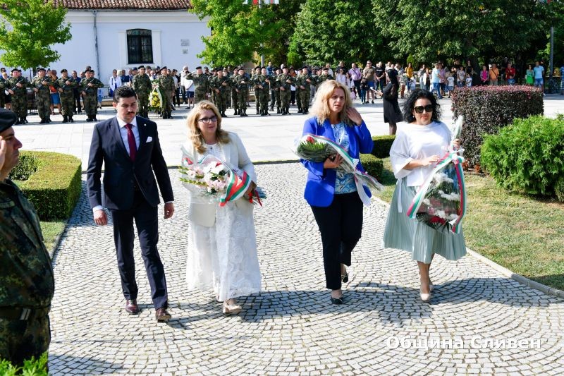 С ритуал – поклонение, тържествено издигане на националния флаг и поднасяне на венци и цветя пред паметника на Хаджи Димитър на едноименния централен площад Сливен отбеляза 138-годишнината от Съединението на България.
