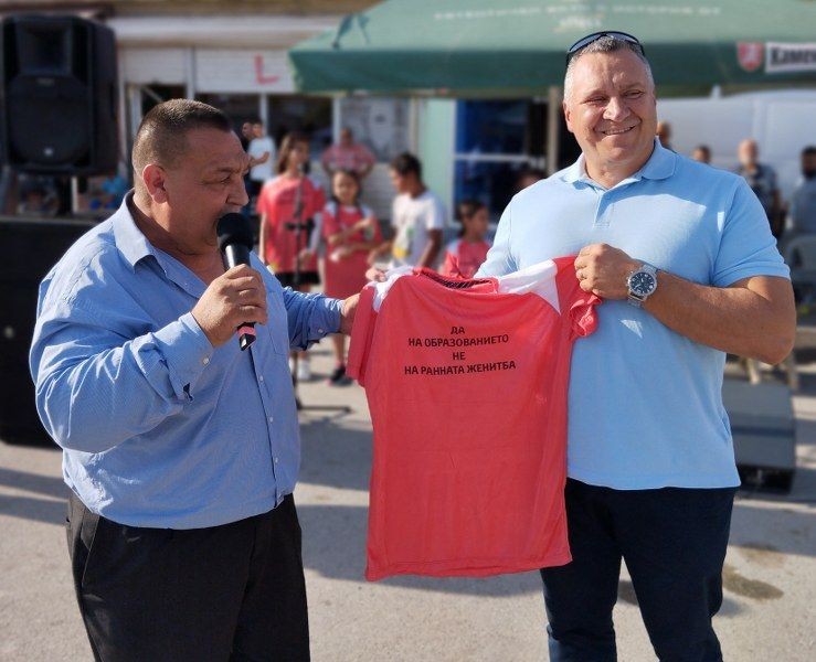 На финала, областния управител Маринчо Христов получи фланелка с мотото на кампанията „ДА на образованието, НЕ на ранната женитба“.