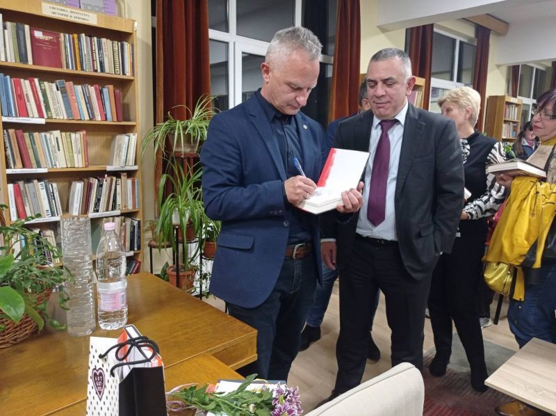 Библиотека "Зора" в Сливен се оказа тясна за всички, които дойдоха на срещата-беседа с писателя Захари Карабашлиев, на която той представи последния си роман "Рана". На събитието присъства и кметът Стефан Радев, който си купи книгата и получи автограф от автора.