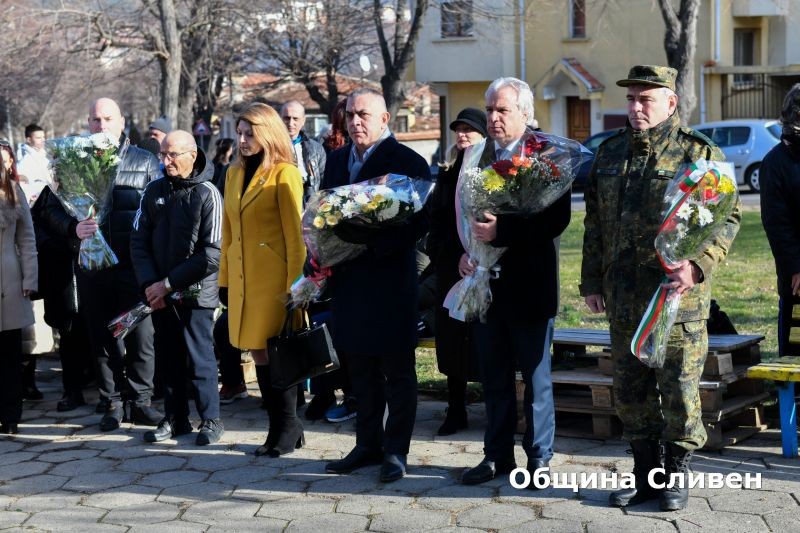 Цветя поднесоха още председателят на Общински съвет-Сливен Димитър Митев и общински съветници, областният управител Маринчо Христов, заместник-командирът на Център за подготовка на специалисти полковник Данчо Николов, представители на образователни и културни институции, граждани. Цветя бяха поднесени от името на Сливенска митрополия, народните представители Десислава Танева, Мария Белова и Татяна Султанова и от директора на ОДМВР комисар Димитър Величков.