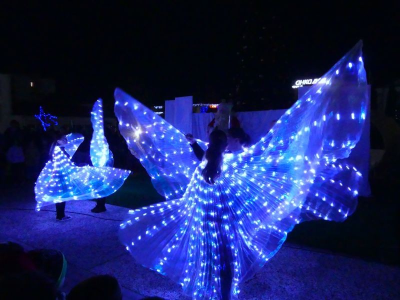Централният площад на града се превърна в приказно място, изпълнено с усмивки, детска глъч и коледна магия, донесена от малките джуджета от ДТФШ „Тракия Вижън“ с ръководител Ивета Митева. Тържеството беше открито с вълнуващо представление на артистите от Куклен театър „Георги Митев“ – Ямбол, които потопиха малки и големи в света на своите герои. Кулминацията на програмата беше уникалният и завладяващ танц на малките новозагорски ангели, наречен „Коледно сияние“, който допринесе за неповторимата празнична атмосфера.