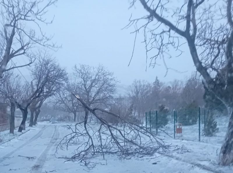 Аварийните екипи на Общината, на Пожарната, на Общинско предприятие „Озеленяване и гробищни паркове“, на комуналните услуги, са на място и работят по сигналите и отстраняване на авариите.